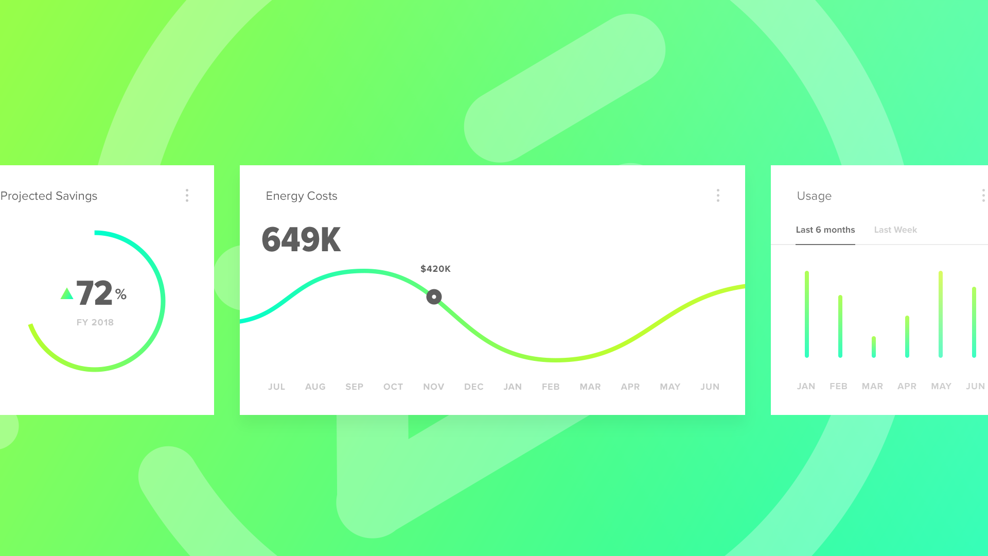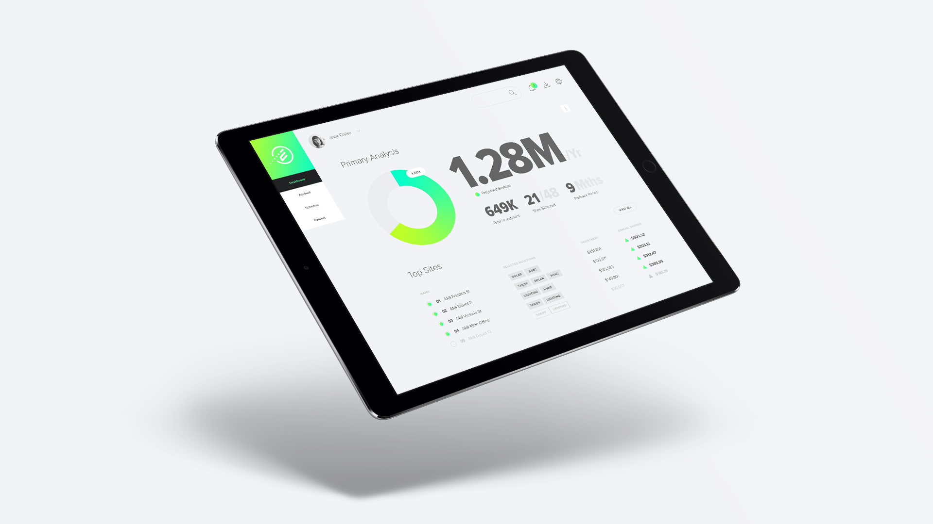Dashboard concept and brand identity for a commercial scale power consumption comparison and savings projection tool.