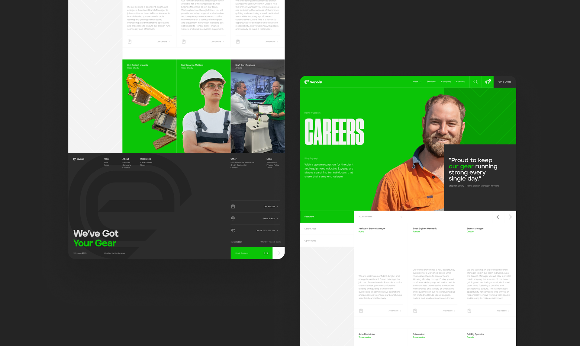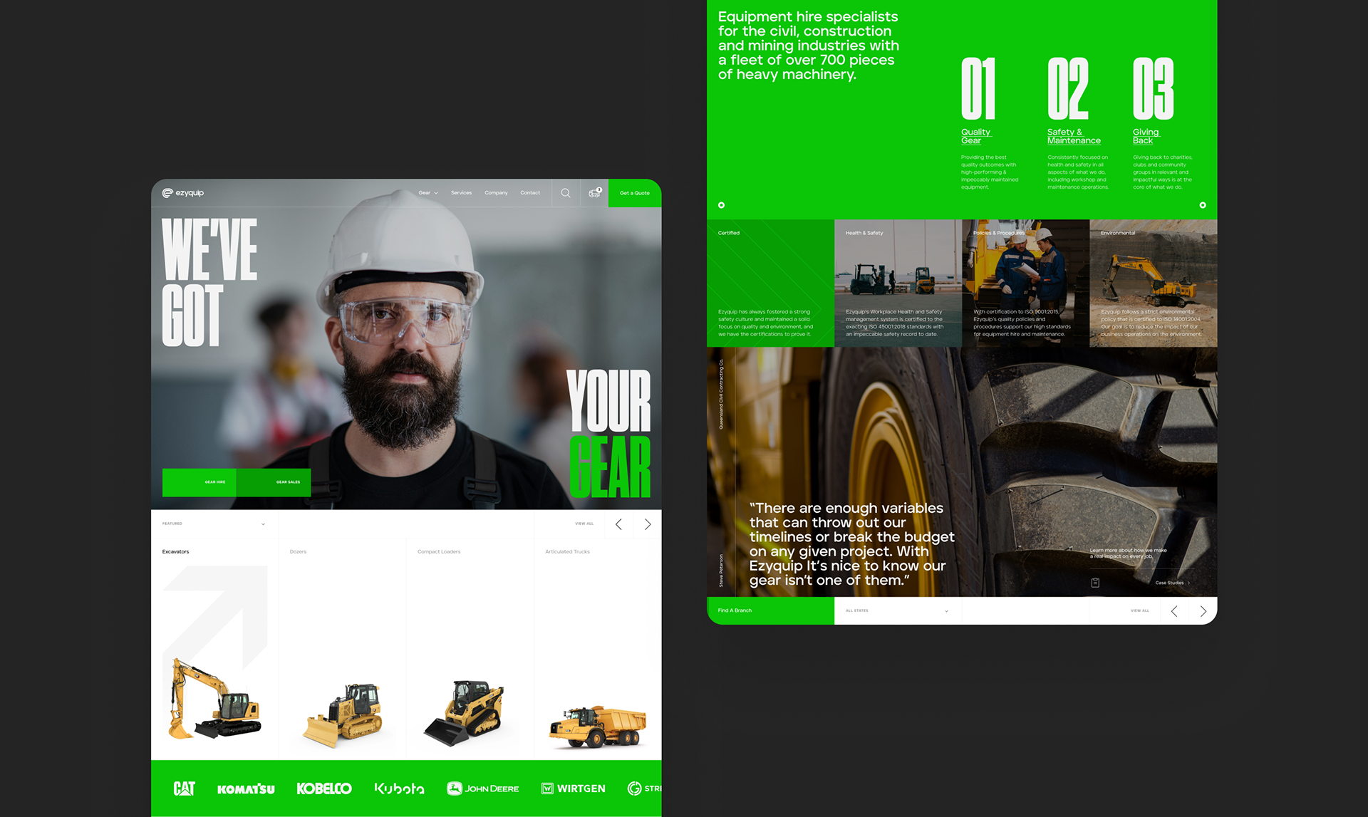 Complete brand and website re-design for a heavy equipment hire specialist, projecting precision, toughness and action. Repositioning a regional brand as a nation wide heavyweight with optimised UX & UI to support and propel this expansion.
