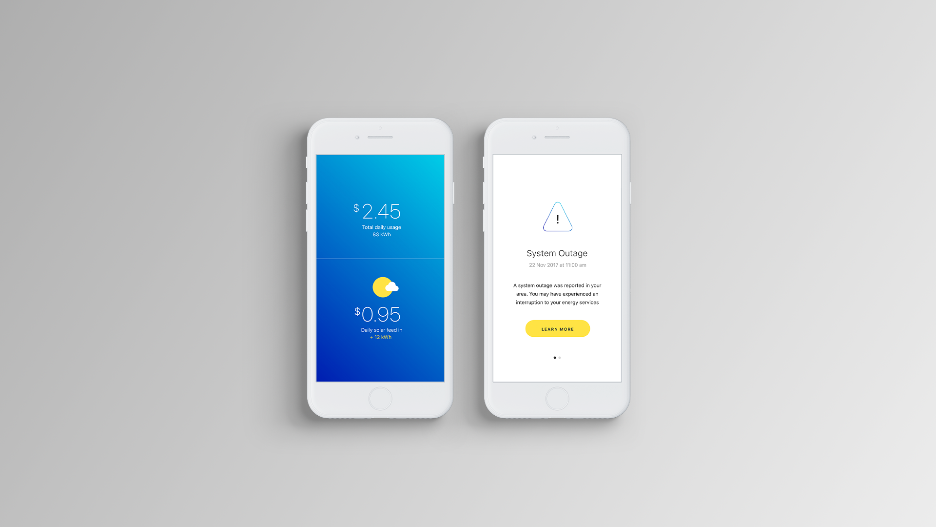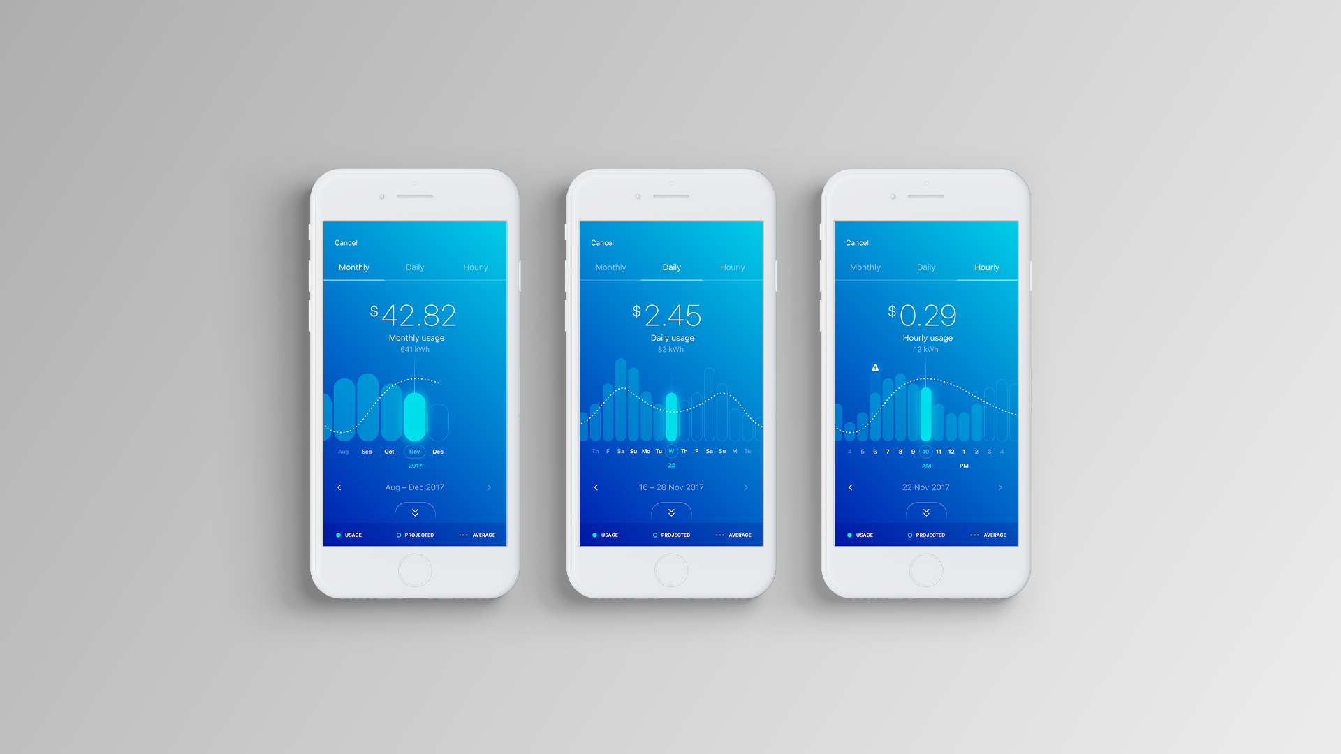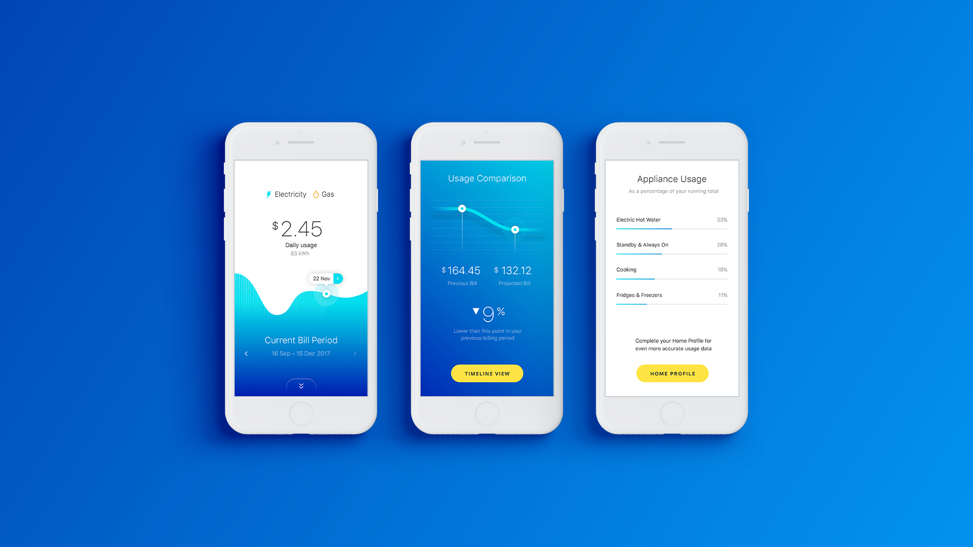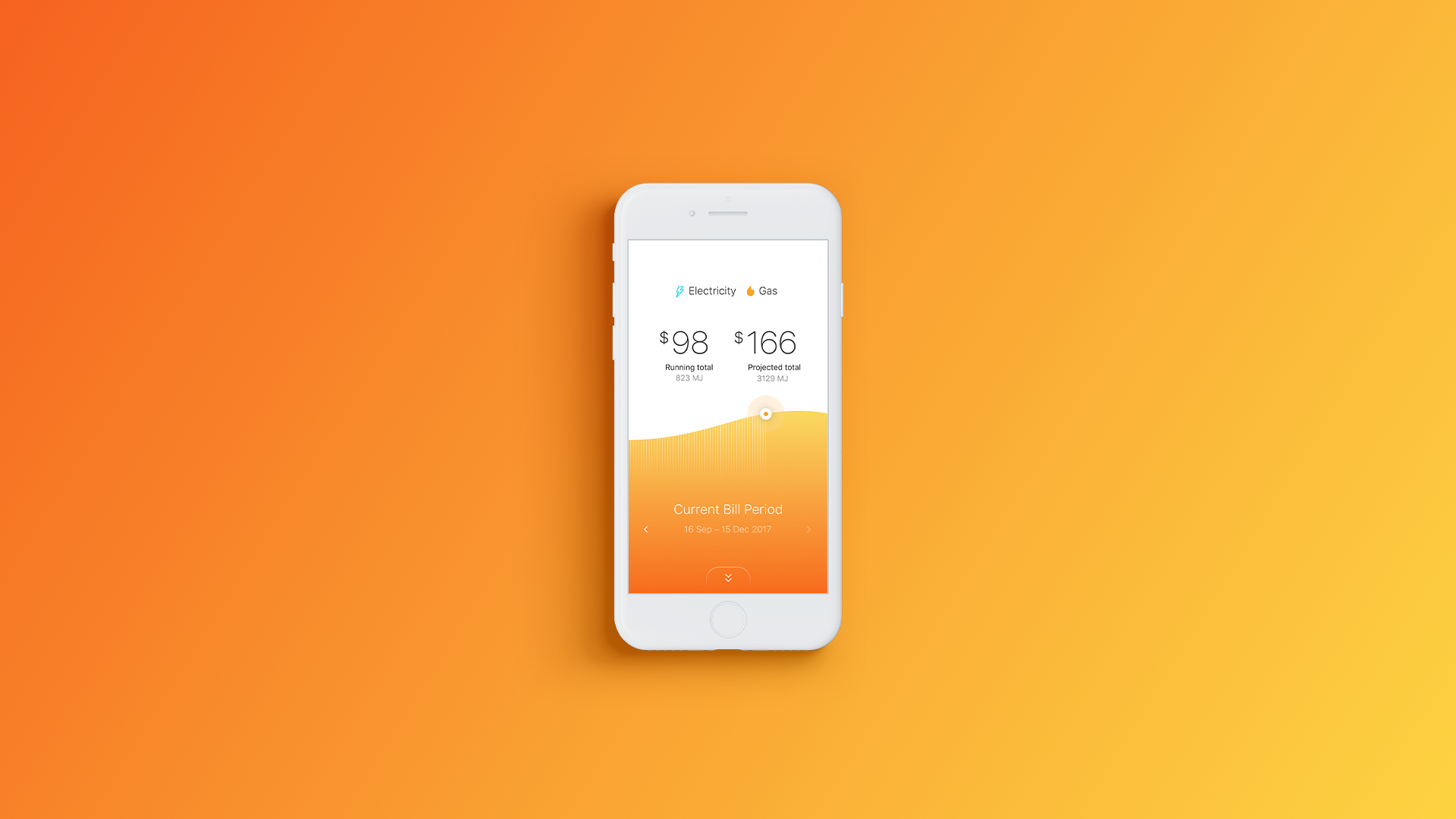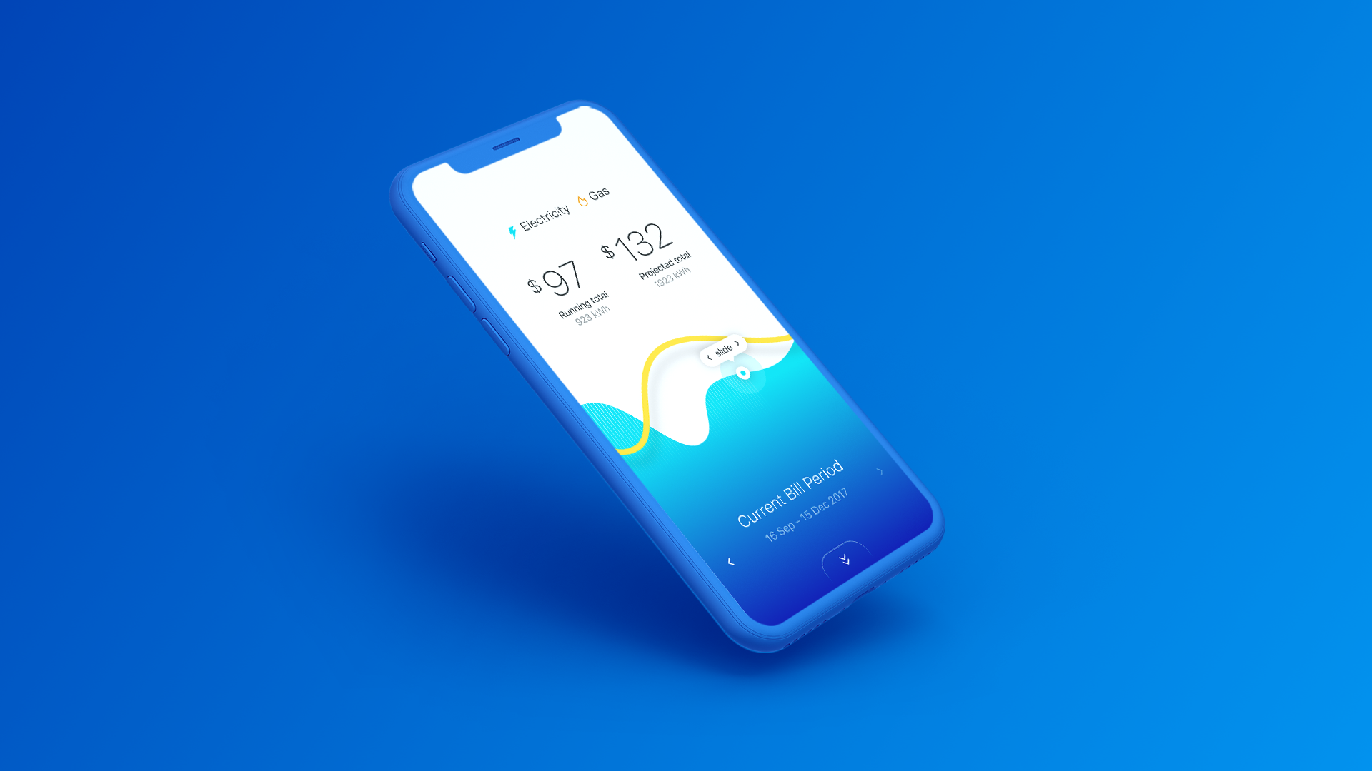 Energy utility app concept for reviewing usage data across consumer electricity and gas accounts.